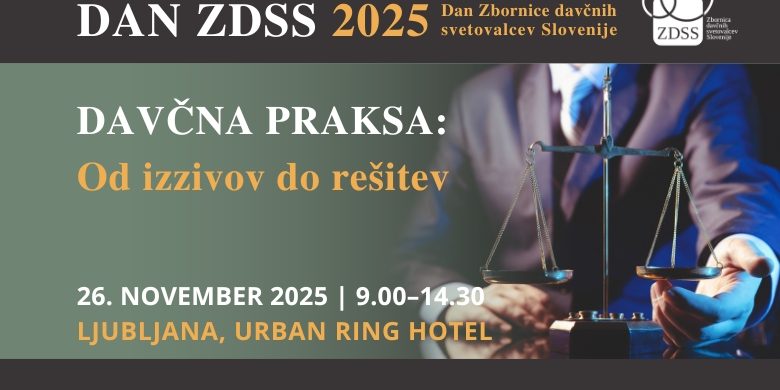 Zbornica davčnih svetovalcev Slovenije (ZDSS) vas vabi na Dan ZDSS 2025, osrednji strokovni dogodek za davčne svetovalce in vse, ki se pri svojem delu srečujejo z davčno zakonodajo.