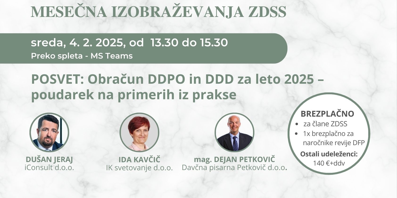 Poudarek bo na strokovni diskusiji o aktualnih vprašanjih in dilemah udeležencev v zvezi z obračunom DDPO in DDD za leto 2025.