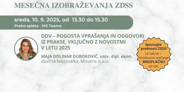 Da bi preverili, ali pravilno obračunavate in plačujete DDV v vaši vsakdanji praksi, ter se seznanili z novostmi, vas vabimo, da se udeležite izobraževanja ZDSS.